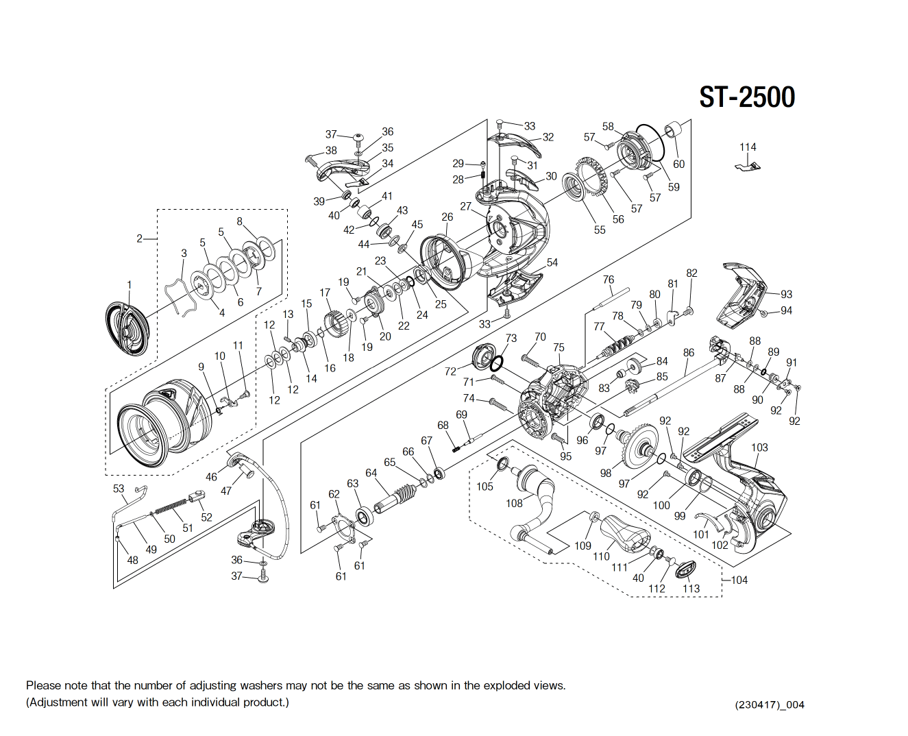 MVSpools olarak, Shimano Stradic 2500 FM balık makinesi için tam bir parça dökümü sunuyoruz. Envanterimiz, makinenizi mükemmel durumda tutmak için gereken tüm parçaları içerir. Dişlilerden makara parçalarına kadar ihtiyacınız olan her şeye sahibiz.